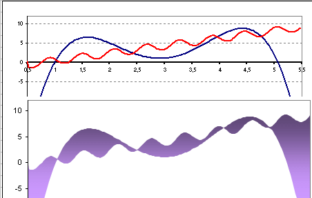 In einem Punkt(XY)-Diagramm können Funktionsgraphen, beispielsweise Parabeln oder Geraden dargestellt werden. Nun sollen Flöchen, die durch die überschneidung zweier Funktionsgraphen entstehen optisch hervorgehoben werden.